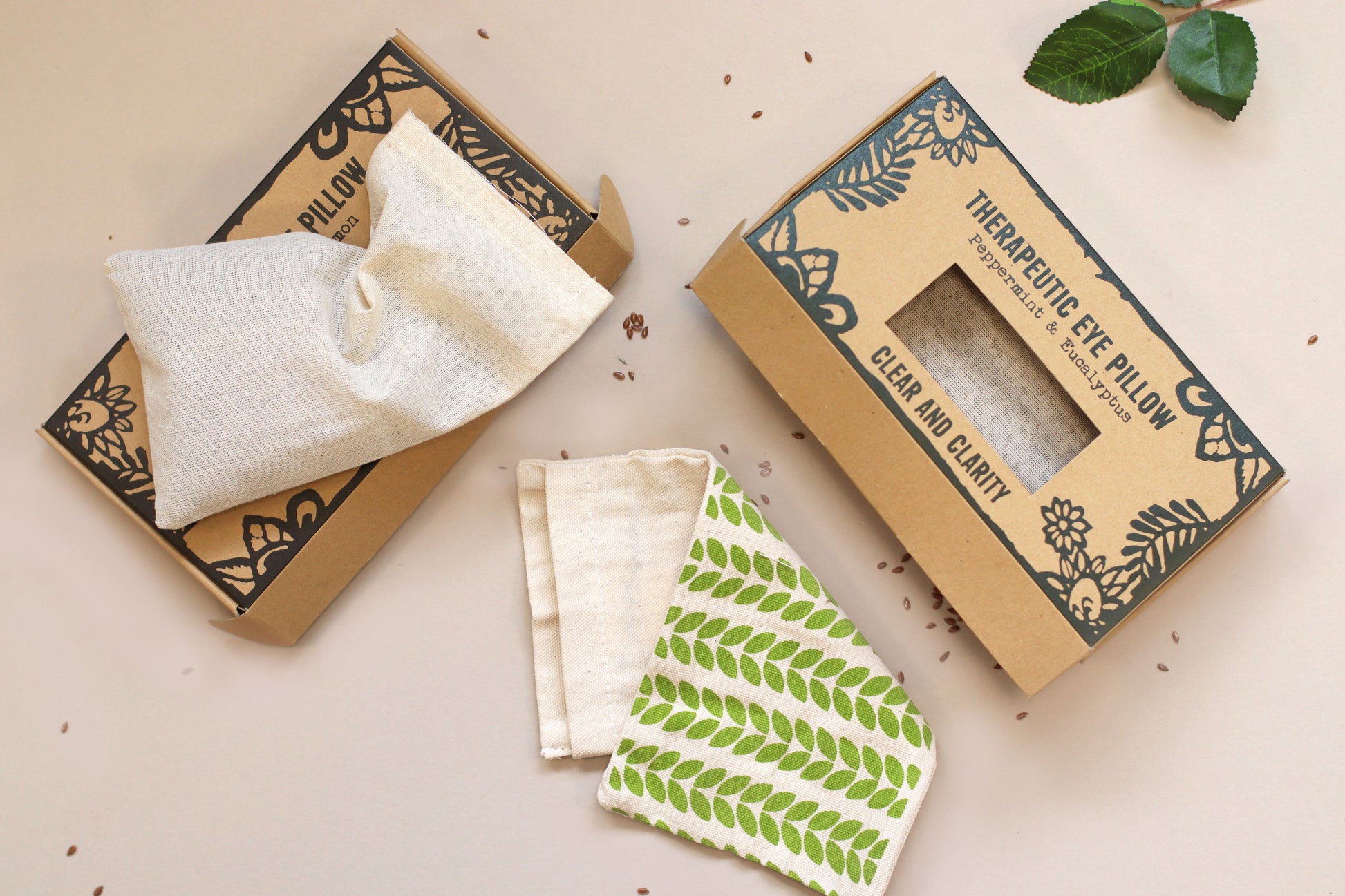 The Agnes + Cat Eye Pillow – Clear & Clarity supports mindful focus and refreshed calm through gentle weight and clarifying scent. Filled with softly weighted linseed and infused with peppermint and eucalyptus essential oils, it rests across the eyes and forehead to help ease tension, soften light and promote a clearer, more open feeling.