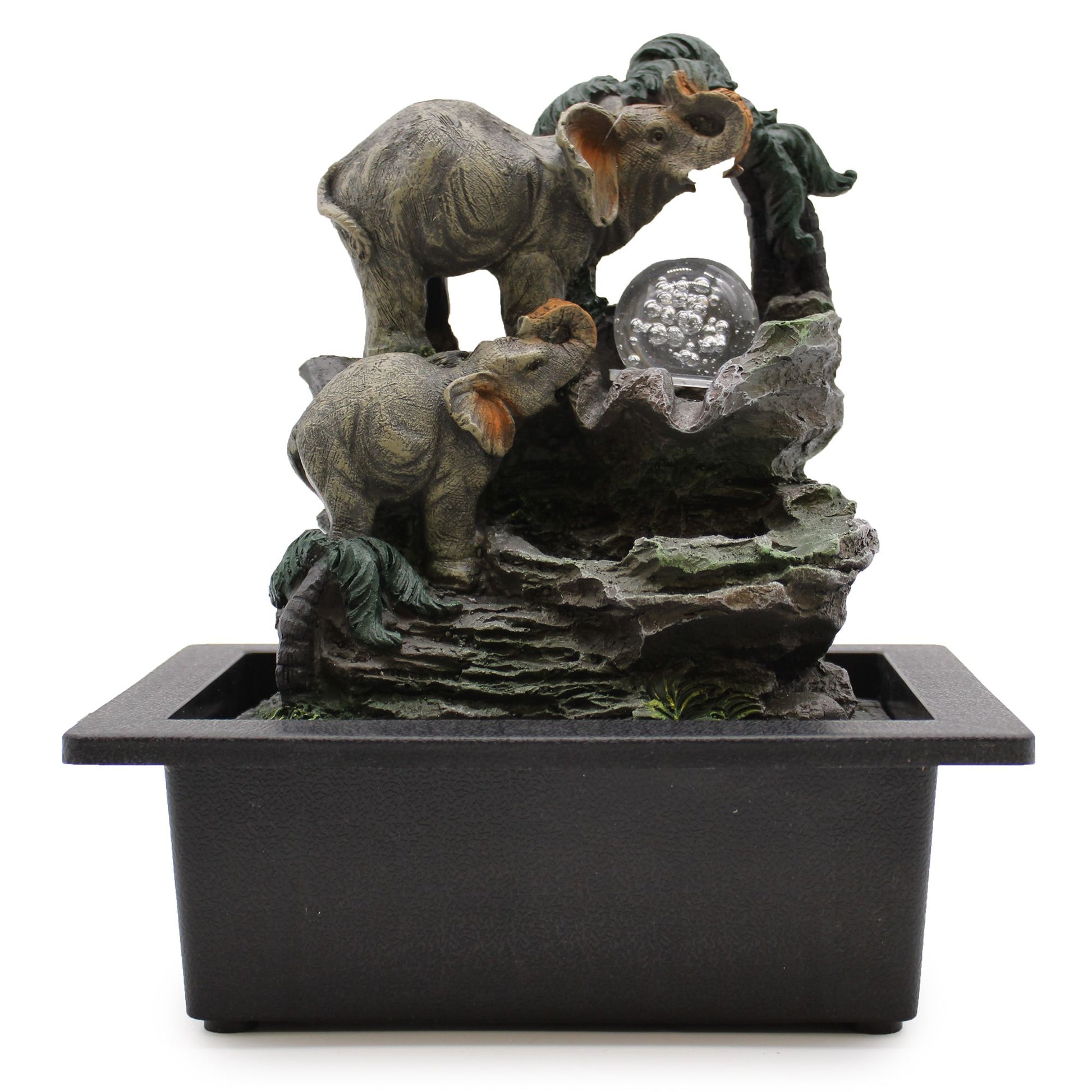 - Indoor tabletop water feature with elephant family design