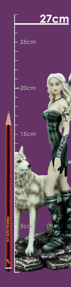 Esarosa Gothic Fairy and Wolf Resin FigurineEsarosa is a gothic-themed fairy figurine standing beside a wolf companion. Finished in black-and-white tones with sculpted wings and confident posture. Ideal for fantasy retailers and alternative home dcor displays.