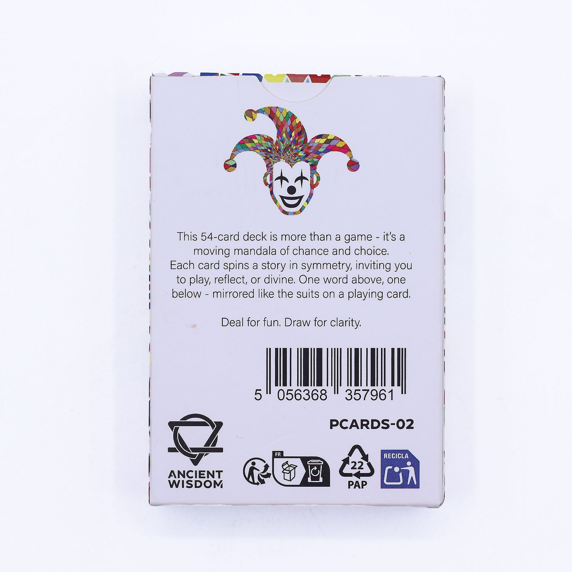 Printed on high-quality playing-card stock, the deck includes 52 standard cards plus 2 jokers, each with mirrored, symmetrical designs that support upright and reversed interpretations. Whether you’re seeking insight, exploring daily guidance or enjoying a quiet moment of reflection, the mandala patterns help centre the mind and encourage harmonious focus.