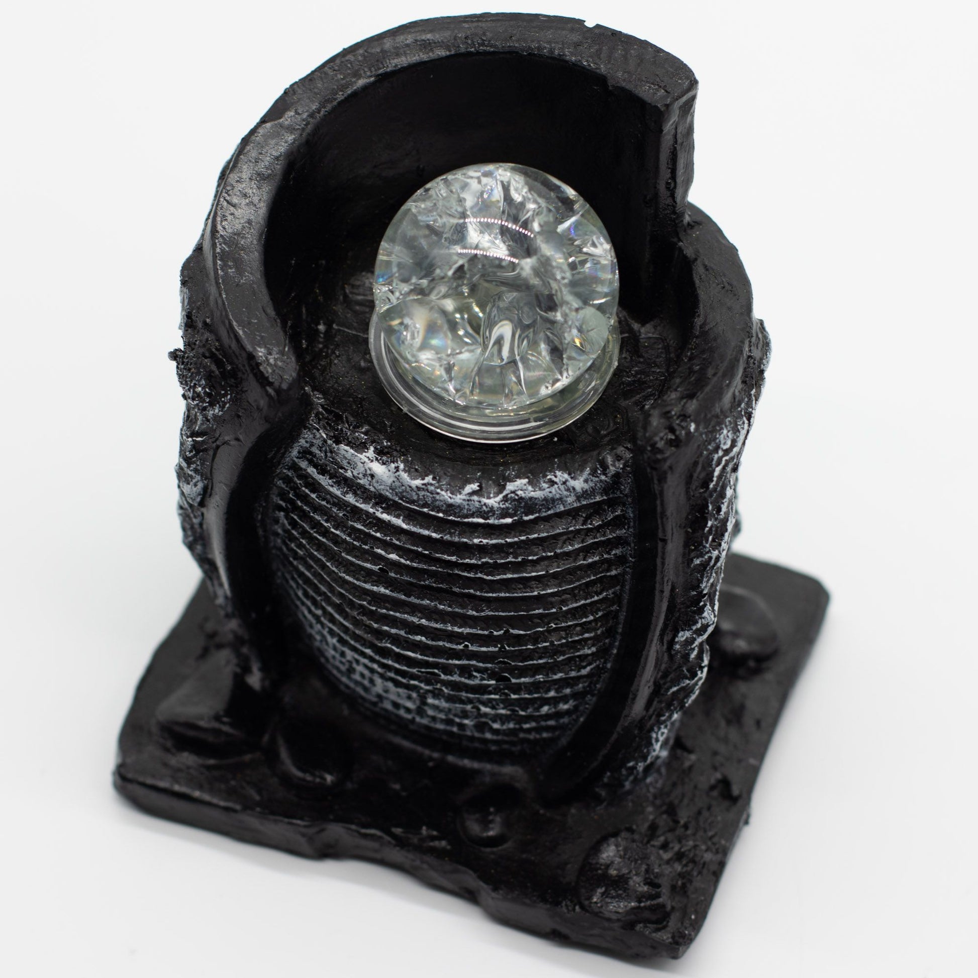 - Indoor tabletop water feature with pot and crystal ball design